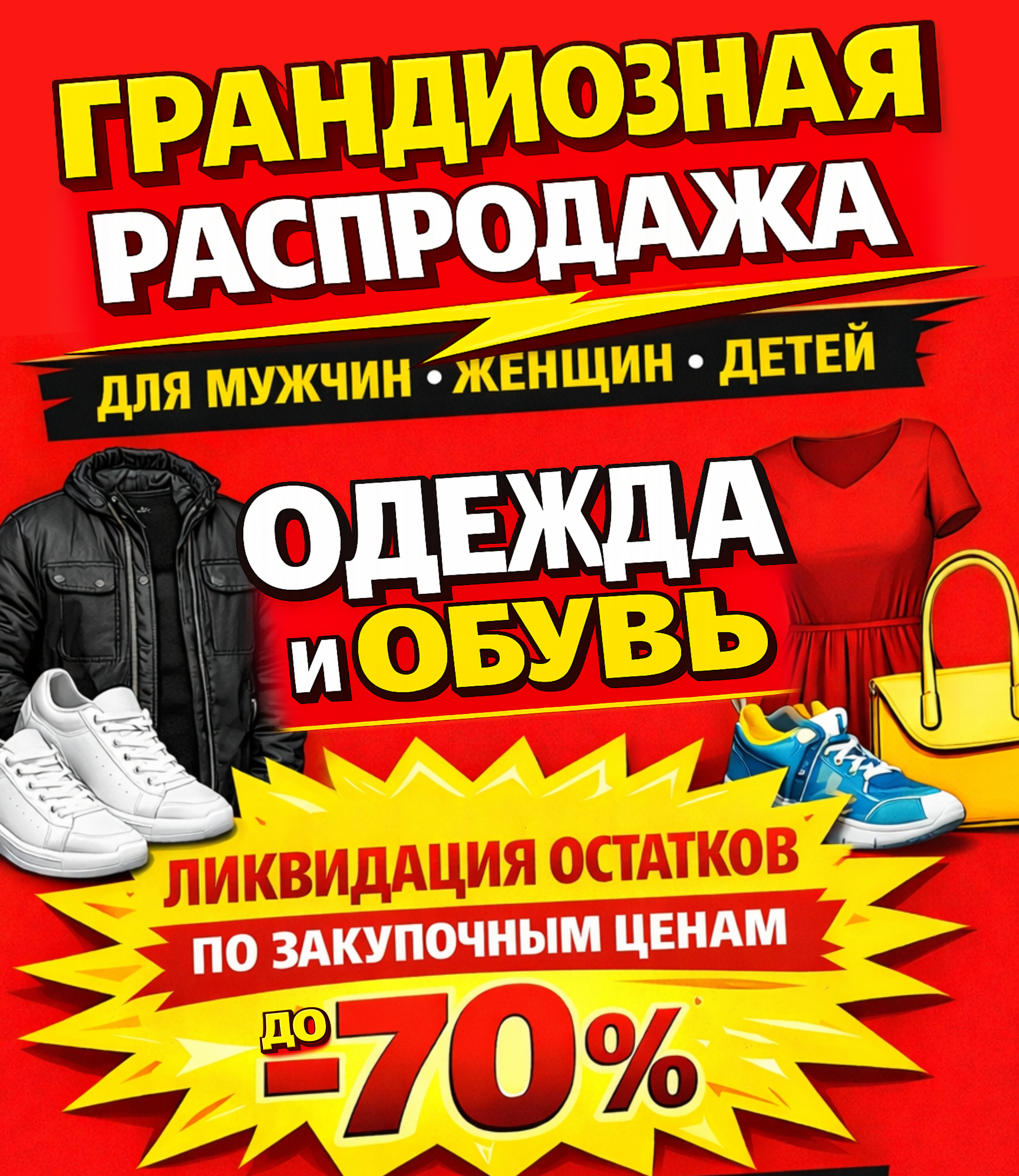 Грандиозная распродажа одежды и обуви для мужчин, женщин и детей.