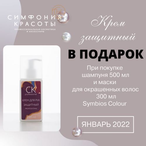 При покупке шампуня 500 мл и маски 300 мл для окрашенных волос Symbios Colour В ПОДАРОК крем для рук защитный СК PROFESSIONAL